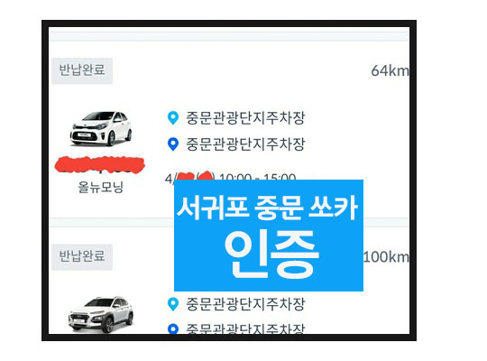 오늘은 제주도 서귀포 중문관광단지 내 쏘카존을 이용해서 사용했던