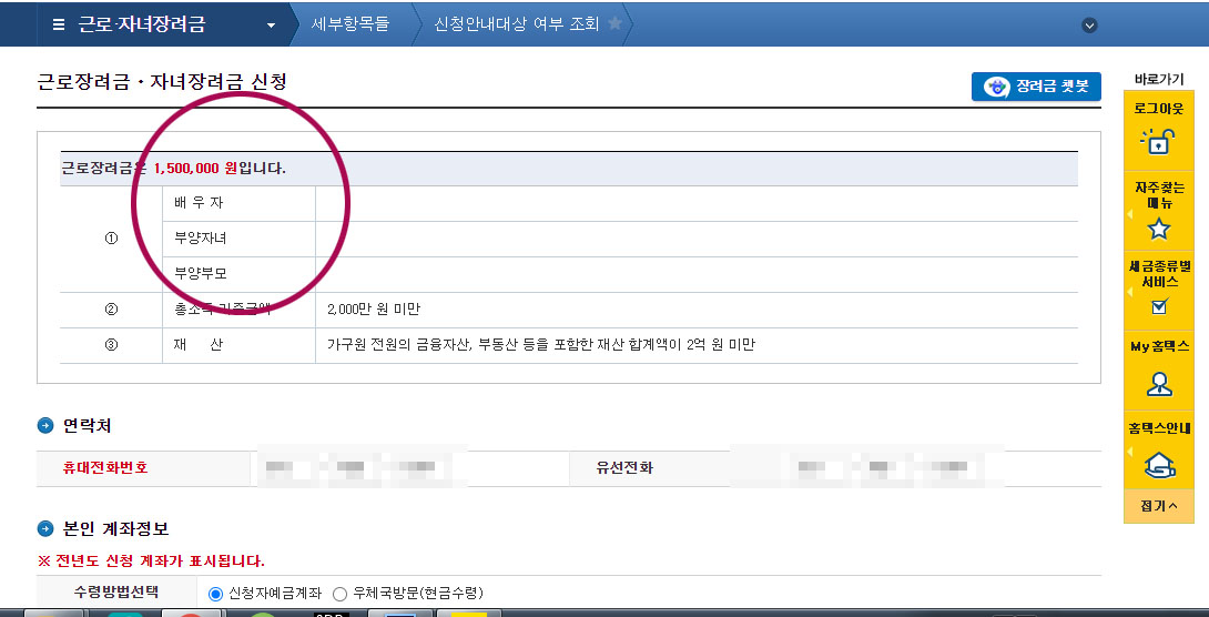 홈택스에서 근로장려금 대상자인지 여부 조회하기