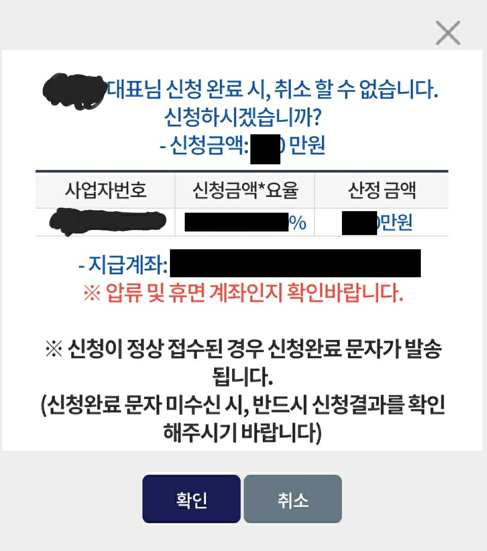 계좌번호를 입력하고, 신청한다고 버튼클릭하시면, 다시한번 정리된 내용이 나오고 신청이 완료됩니다.