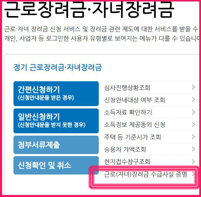 홈택스에 들어가셔서 근로장려금 메뉴로 가시면, '근로장려금 수급사실 증명' 전년도 서류를 인쇄하셔서