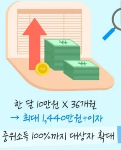 적립해주는 제도로 올해부터 기준 중위 100% 이하 가구 근로청년 층까지