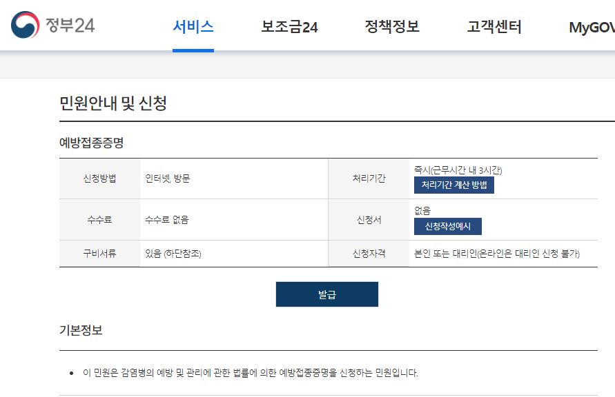 정부24 민원서비스로 발급받을수 있는 백신접종증명서