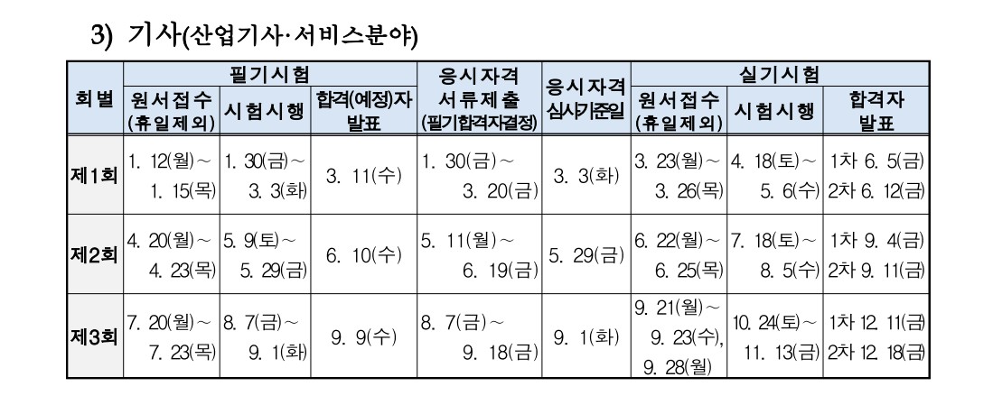 필기시험 접수는 1회는 1월, 2회는 4월, 3회는 7월로 되어있고,