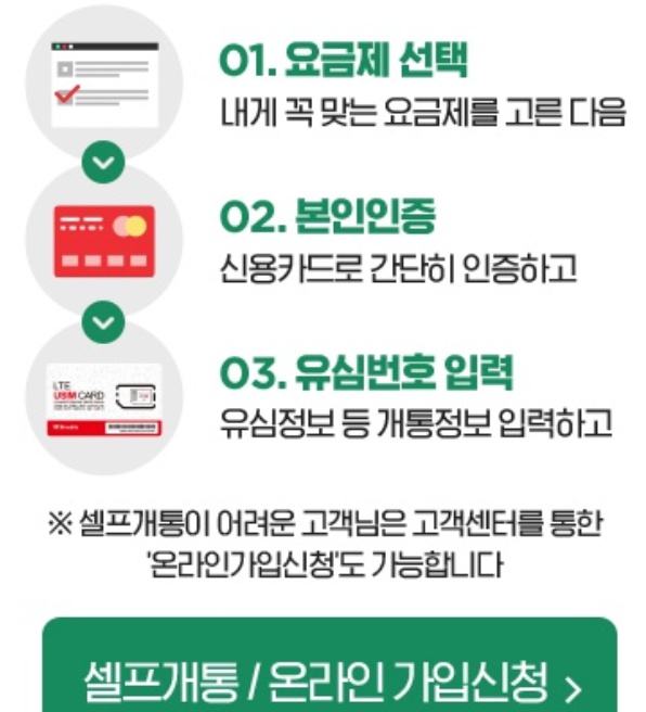 편의점 세븐일레븐에서 유심구매해서 홈페이지상 셀프개통을 진행하며,