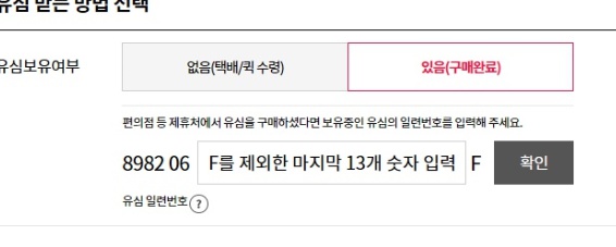 (4) 유심보유여부를 묻는데, 유심있으니 편의점서 사신 유심의 카드 뒤편 일련번호를 넣습니다.