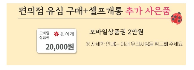 (2) 보다시피 편의점 유심구매시 신세계상품권 2만원 외에 셀프개통 추가사은품등이 다수 있습니다
