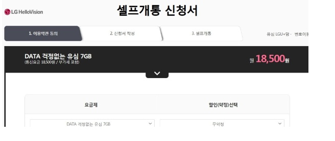 그래서, 헬로모바일 LG망 서비스중 7Gb+ 무제한데이터, 무제한통화 요금제로