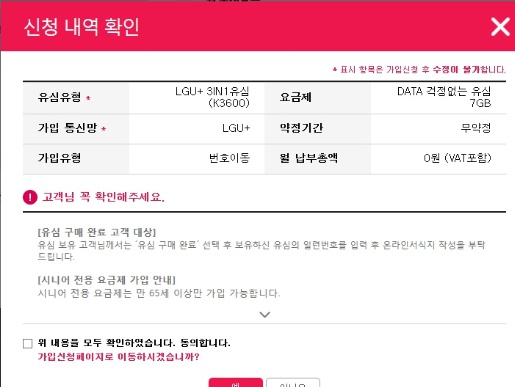 (7) 셀프개통신청서에 들어왔습니다.