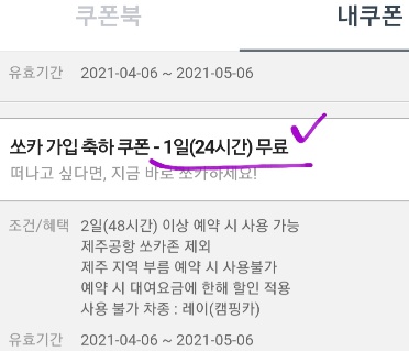 [3] 쏘카 메뉴에 보시면 쿠폰에서 내 쿠폰을 보실수 있는데,